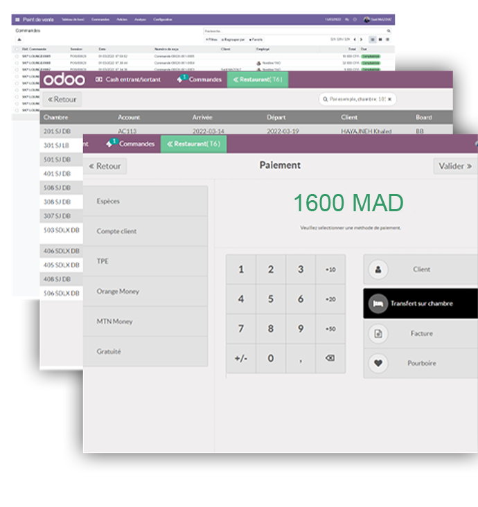 • Gestion Avancée des Paiements Clients : Simplifiez la facturation en imputant facilement les extras aux comptes clients (prépayé ou en extra) et en acceptant une variété de méthodes de paiement .