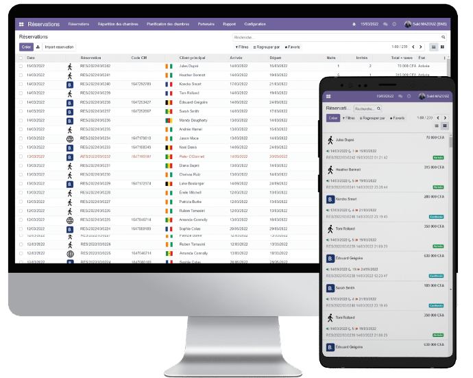 Propulsée par la puissance de la plateforme ERP Odoo , appréciée par des millions d'utilisateurs à travers le monde, AGIL-PMS intègre de manière transparente tous les aspects de votre activité hôtelière au sein d'un seul système. Gérez efficacement vos réservations, votre relation client, vos points de vente, votre HouseKeeping, votre comptabilité et bien plus encore, grâce à une interface intuitive et conviviale.